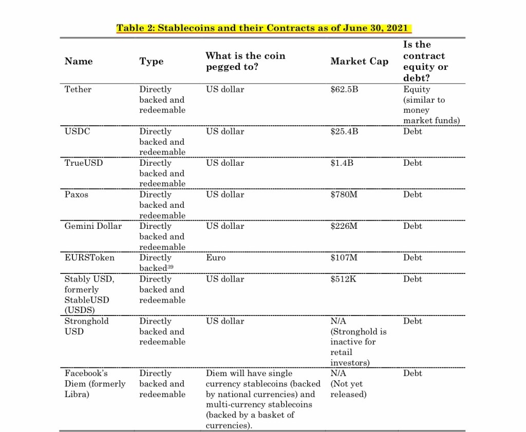 The over arching point is that stablecoins that look and function like bank demand deposits should face equivalent levels of regulation. That does not necessarily mean exactly the same set of rules but something functionally equivalent.